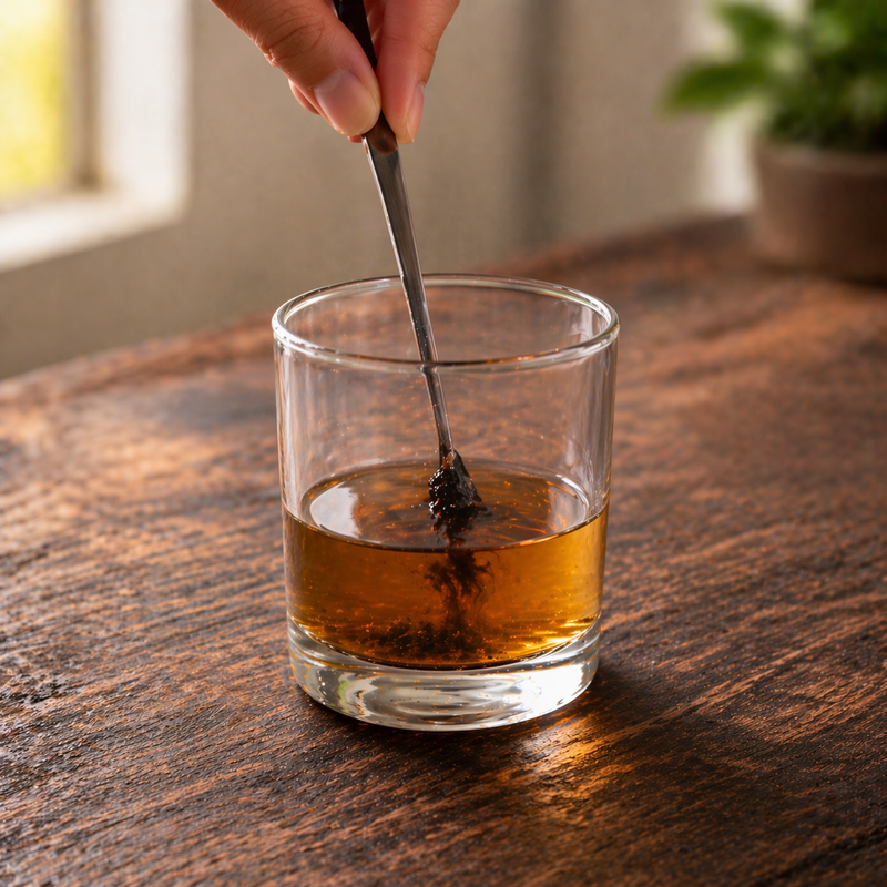 Dissolve it in warm water, milk, or tea and stir until fully mixed.